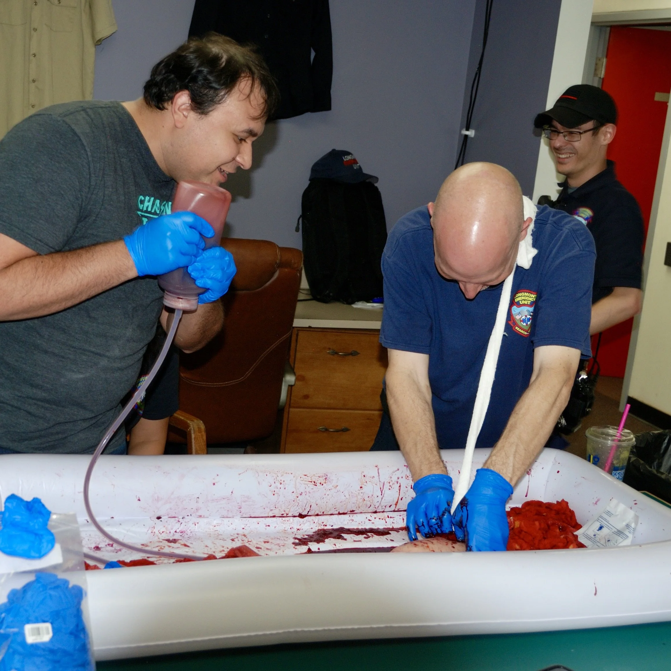 Take your bleeding control skills to the next level in this optional add-on training lab following the official Stop the Bleed™ course. Using TrueClot® advanced wound packing task trainers with simulated blood and realistic anatomy, this session gives students hands-on experience with lifelike bleeding scenarios — including large caliber gunshot wounds, knife/laceration injuries, and junctional (inguinal) hemorrhages.